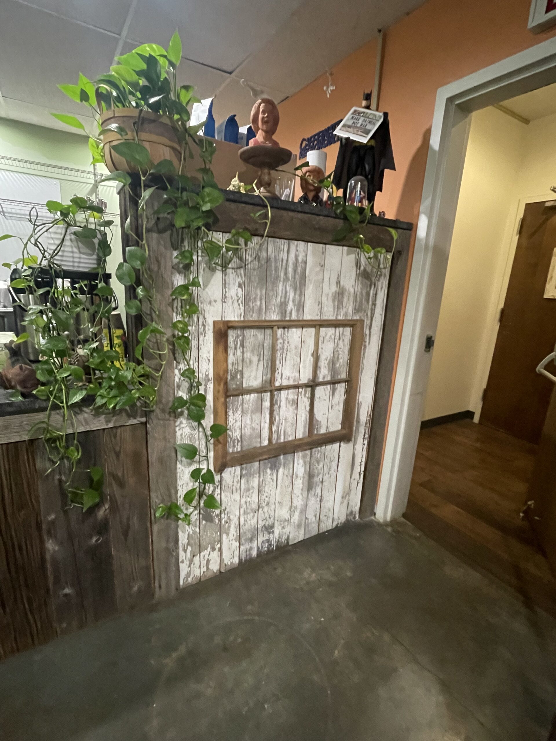 Custom window and door treatment for coffee shop